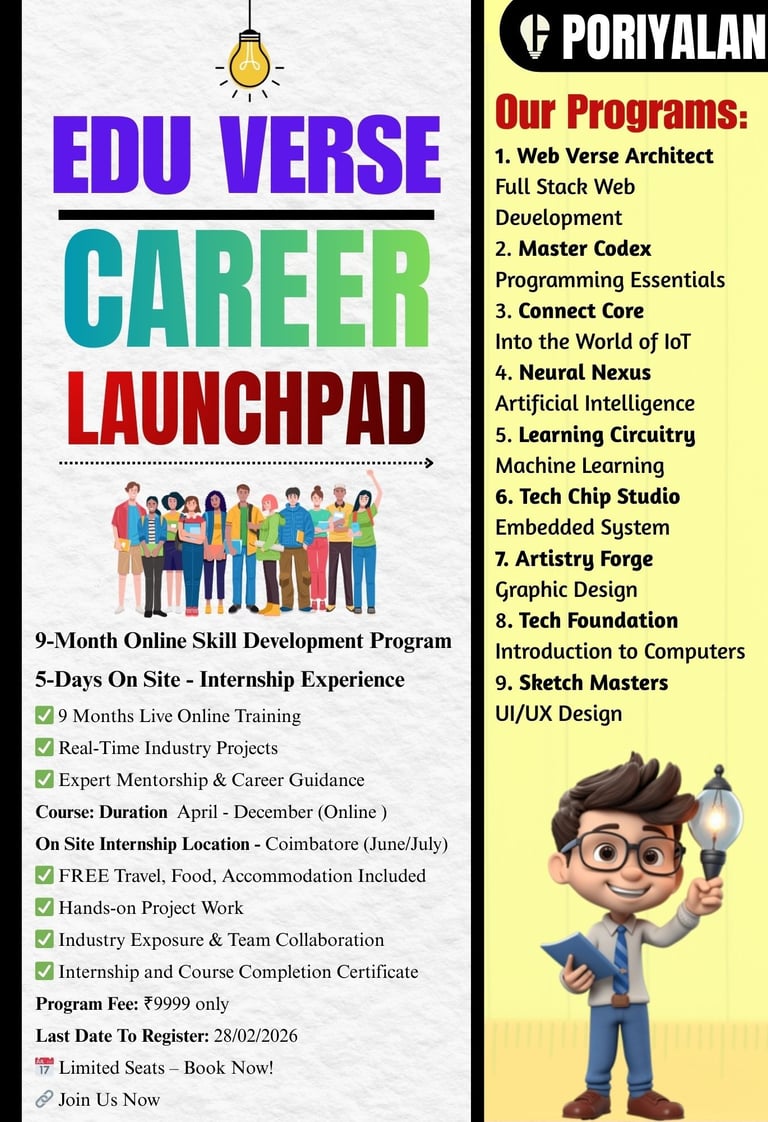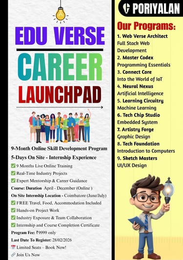 🏢 On-Site Internship: June/July – Coimbatore